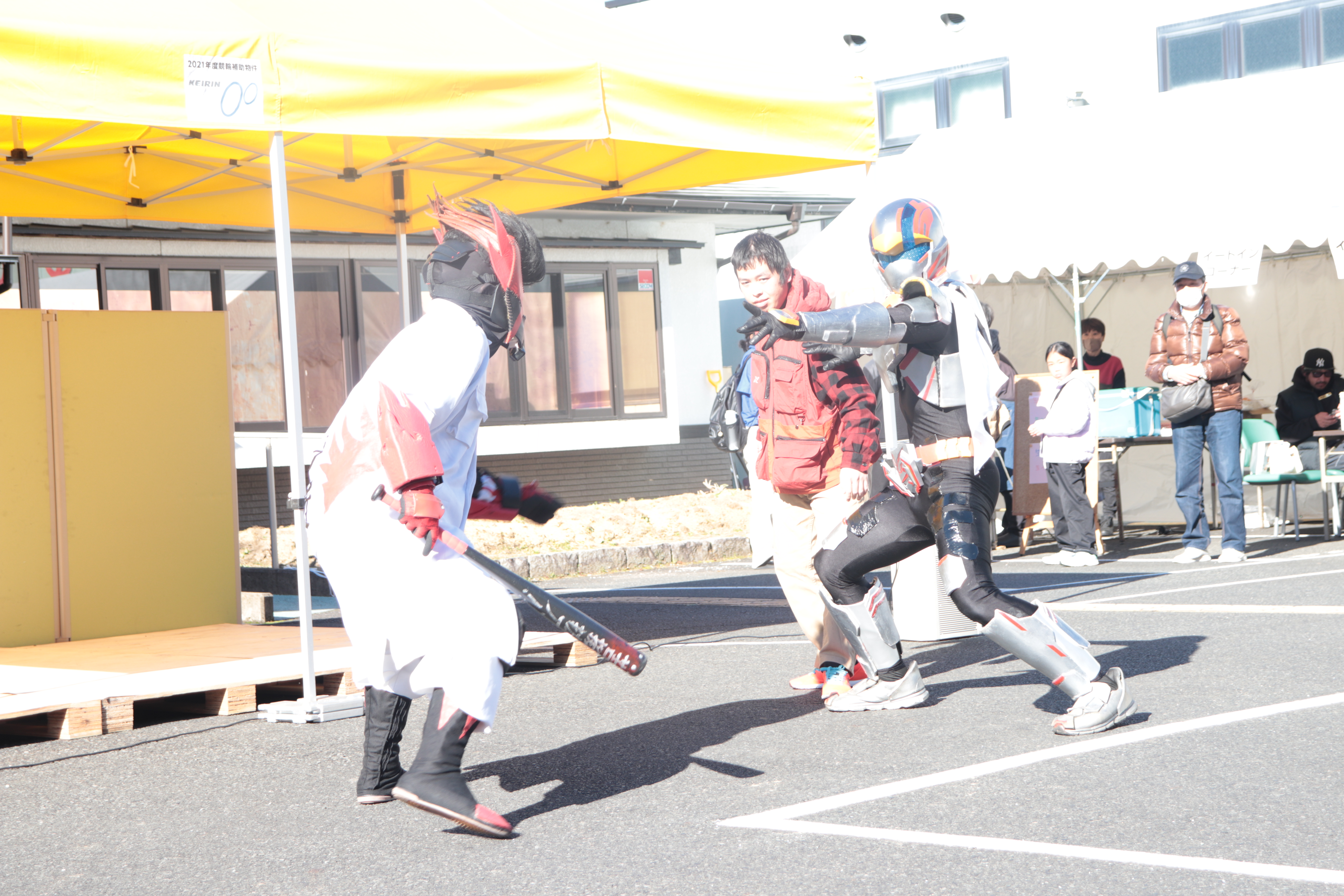 いかるがの郷の畑で育てたごぼうが、たっぷり入ったとん汁は完売!今回は初めてキッチンカーにも来ていただき、焼き芋やメロンパン、駄菓子等の甘味も充実。童夢さんの太鼓演奏、里山戦士イカルガーさんのヒーローショー、あやべ健康プラザHIPHOPダンススクールさんのダンス等、ゲストによる多彩なショー。利用者のご家族からご提供いただいた野菜を販売した野菜市も大盛況。利用者が司会を務めたじゃんけんゲームとクイズ大会。最後に全員参加の福引を行い、時間いっぱい楽しみました。何より利用者やご家族の皆様、地域の皆様、職員の貴重な交流の場となり、親睦が深めることができました。
